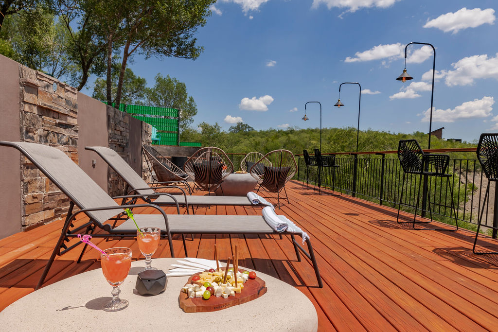 • Y el preferido de todos: SOLARIUM de día y MIRADOR ESTELAR de noche. Nuestro espectacular DECK, de 15 mts de largo por 5 mts de ancho, donde podras disfrutar del sol durante el día y del cielo más estrellado en las noches. Y por supuesto, los atardeceres más inolvidables en nuestras confortables sillones y camastros, desde donde gozaras de las vistas más increíbles de nuestra imponente naturaleza.